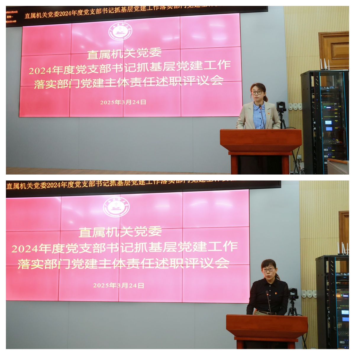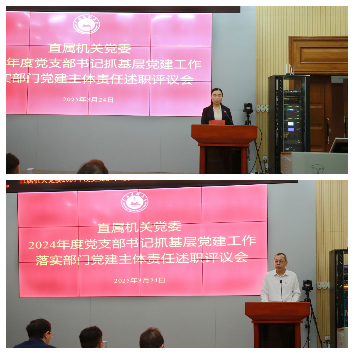 3月24日下午,beats365亚洲版2024年度党支部书记抓基层党建工作落实部门党建主体责任述职评议会议在校本部综合楼九楼报告厅召开。第二临床医学院、第二附属医院党委书记罗杰峰作为学校党委列席会议的领导到会指导,beats365亚洲版委员、直属机关纪委委员、机关各党支部书记及党员代表参加会议。会议由严远东书记主持。